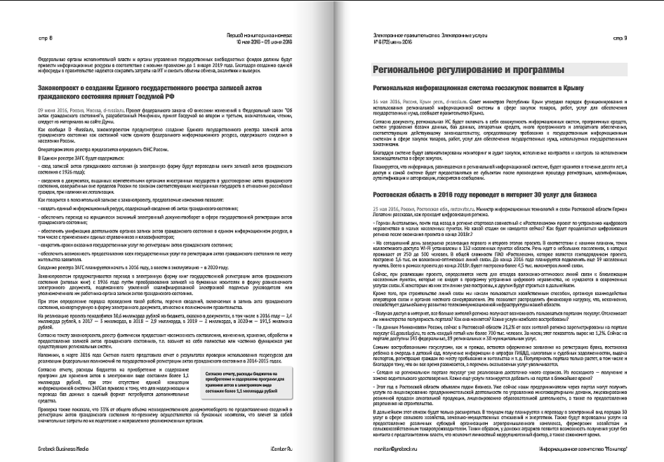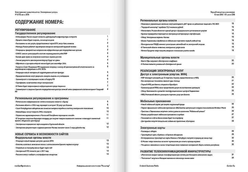 В последнее время большинство органов государственной власти создали свои интернет-сайты, где размещена нормативно-правовая, справочная и новостная информация. Бюллетень рассказывает главам администраций, как эффективно оказывать электронные услуги населению. И как правильно использовать возможности электронного правительства. Популярные темы: новые сервисы и возможности госсайтов, доступ к электронным услугам, мобильные приложения, электронные карты.